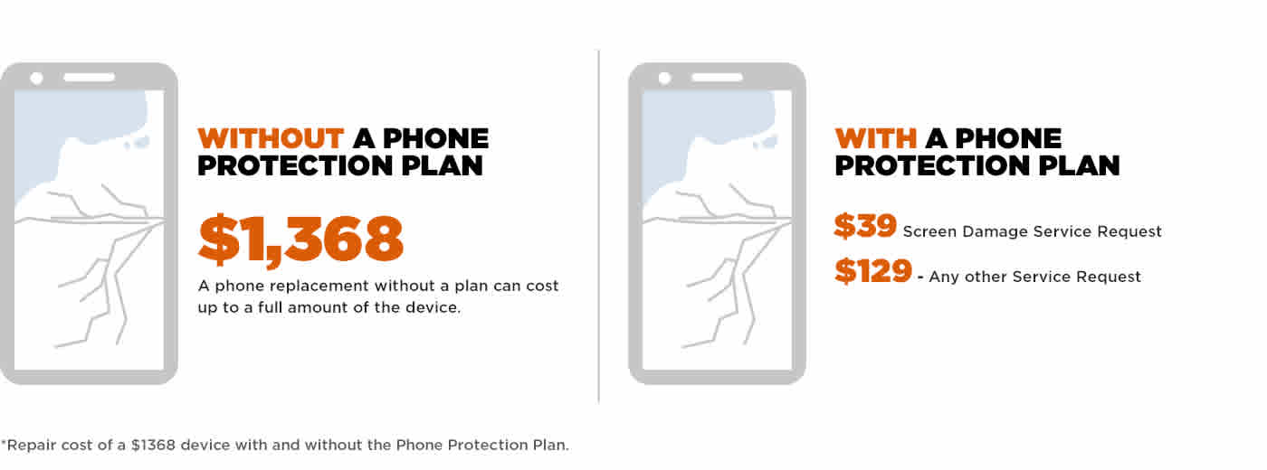 * Repair cost of $1,368 with and without a Phone Protection Plan.